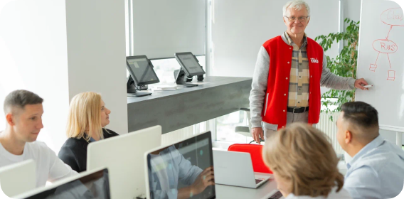 Готовые, структурированные курсы (кассир, калькулятор, управляющий, руководитель) с разным уровнем глубины. Делегируйте обучение профессионалам.