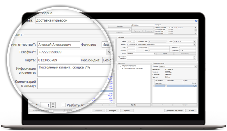 Оператор в iikoCallCenter один раз вводит все данные, и заказ сразу отправляется на кухню и курьерам. Оформление в системе занимает минимум времени, а исполнение заказа – максимально оперативное. -
