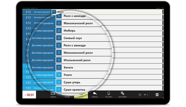 Когда оператор регистрирует заказ, информация о блюдах и модификаторах сразу отображается на кухонном дисплее или принтере через iikoKitchen. Повар сразу видит, что готовить, и может контролировать последовательность блюд.Планирование работы на кухне